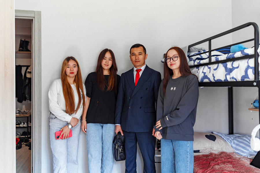 В рамках рабочего визита врио консула Кыргызстана лично ознакомился с условиями проживания участниц программы «Алабуга Старт» в штаб-квартире «Алабуга Политех» и ЖК «Южный парк» и пообщался с девушками.